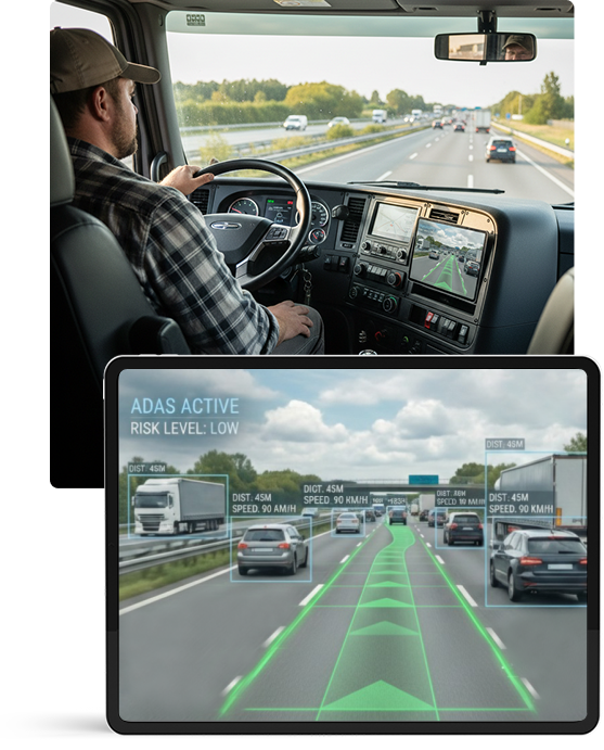 Vision systems powered by AI and Advanced Driver Assistance Systems (ADAS) that use in-cab and external cameras, sensors, and real-time analytics to detect risk and support safer driving.