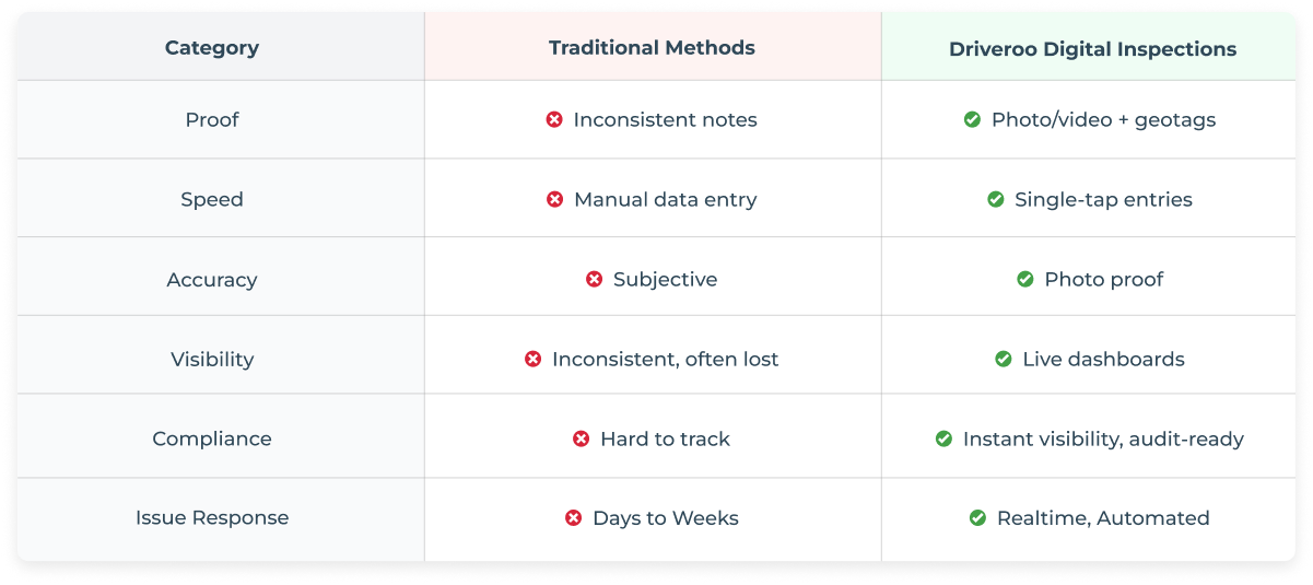 Digitalize mobile inspections with photo/video verification and automated reports. Driveroo cuts inspection time, upskills workers, and streamlines operations.